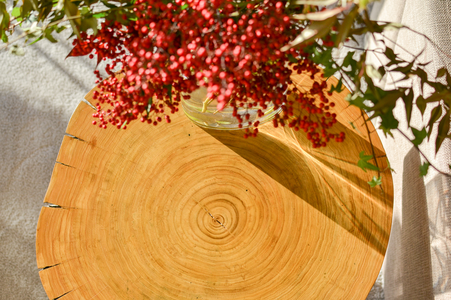 Daqui até à ideia de cortar uma argola do tronco e fazer uma mesa para oferecer ao pai no Natal foi fácil. O difícil foi arranjar quem a cortasse, o que lá consegui, digamos, por portas mais travessas 🙂